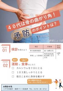 骨粗しょう症は自覚症状がないまま進行するため、若いころから骨粗しょう症検診を受け、自分の骨量を把握することが大切です。早期発見・早期治療のためにも定期的に検診を受診しましょう。