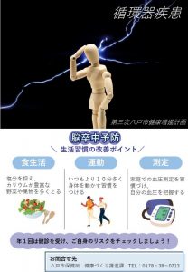 予防のためには、定期的に健診を受診して自身の健康状態を把握すること、塩分を控えること、今よりも10分多く体を動かすこと等、生活習慣の見直しが大切です。